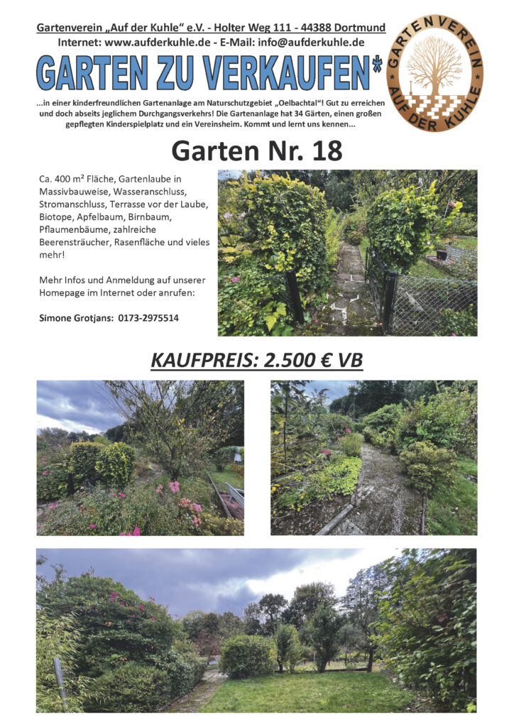 Nutzen Sie die Ruhe und Abgeschiedenheit direkt am Naturschutzgebiet Oelbachtal und finden Sie Ihren Garten. Wir sind ein Generationen übergreifender Gartenverein mit allem was dazu gehört. Unsere Anlage beherbergt einen Kinderspielplatz, große Wiesenflächen, einen eigenen Parkplatz und unser Vereinsheim. Nette Gartennachbarn, gemeinsame Aktivitäten und Feste sind nur ein Grund bei uns heimisch zu werden…